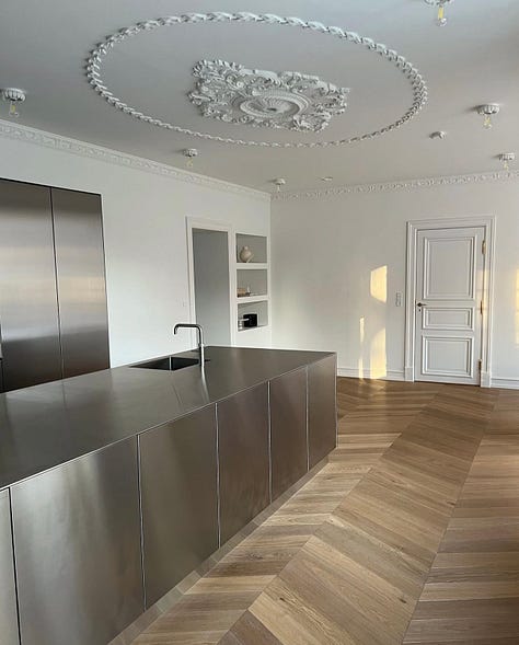 هذا اللقاء بين النيوكلاسيكية والطليعية يثبت أن مادة الستيل قادرة على تحويل أبسط الأماكن إلى ملاذات راقية